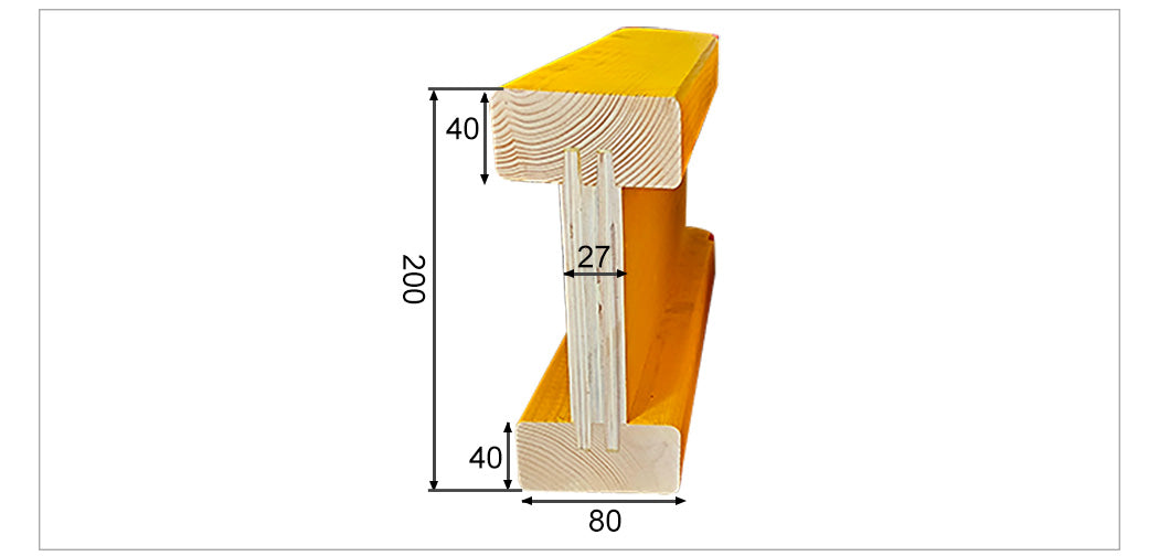 Our products are made of wood. The Web is made of plywood having good bearing force.The flange is made of spruce which have great stability and elastic modulus > 9000 Mp.