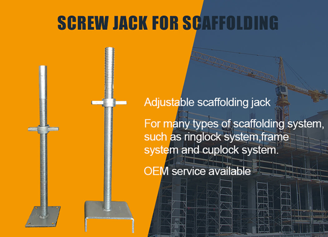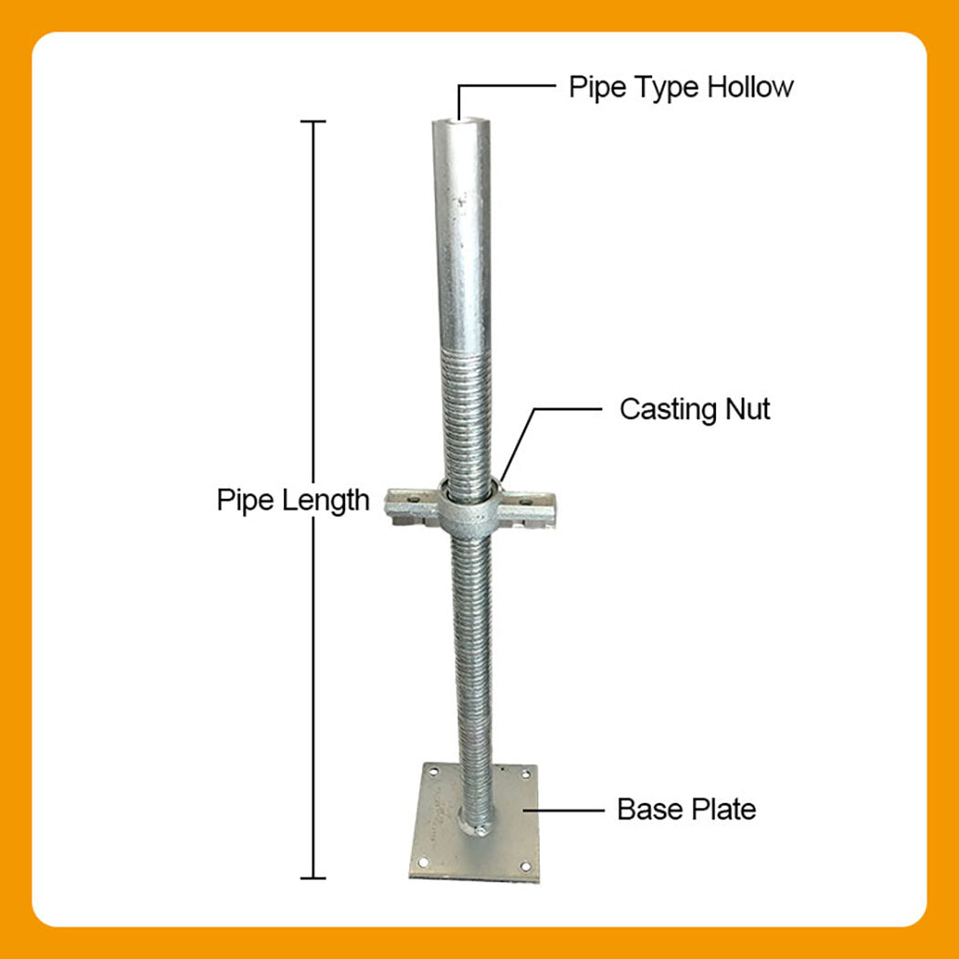 Thread Screw jacks are the accessory used to safely adjust the scaffold legs. This may be necessary when different working heights are encountered or when the scaffold is mounted on sloped surfaces.